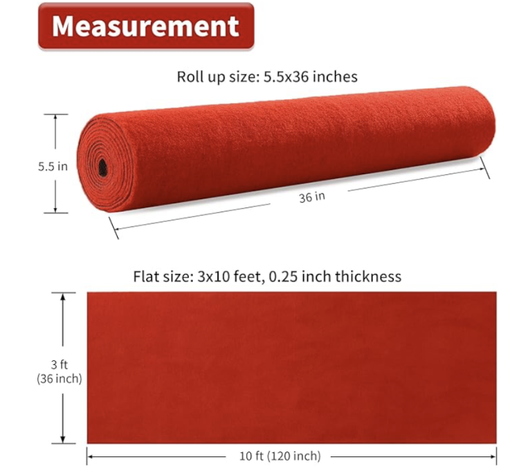 Roll out a touch of Hollywood glamour with the Red Carpet rental. This classic event accessory creates an elegant arrival experience for weddings, galas, awards, store openings, photo backdrops, and any occasion where you want guests to feel celebrated. Easy to roll out and position, the Red Carpet instantly defines an entrance, guides foot traffic, and provides a stylish focal point for photos. Durable and attractive, it pairs seamlessly with stanchions, rope barriers, or floral arrangements to complete a polished, upscale look. Ideal for both indoor and outdoor use when placed on appropriate surfaces, this simple addition elevates the atmosphere and makes every guest feel like VIP.