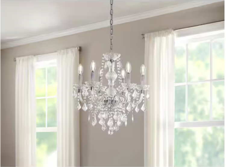 A graceful chandelier that brings instant elegance to any event, this suspended light fixture combines classic charm with a refined presence. Designed to be hung above dining tables, reception areas, or dance floors, it casts warm, inviting light while serving as a striking focal point. Ideal for weddings, formal dinners, corporate gatherings, or upscale parties, it elevates a room’s atmosphere without overpowering other décor. Simple to install by a professional rigger or venue crew, the chandelier complements both traditional and modern settings and pairs beautifully with floral arrangements, draping, and table settings for a cohesive, polished look.